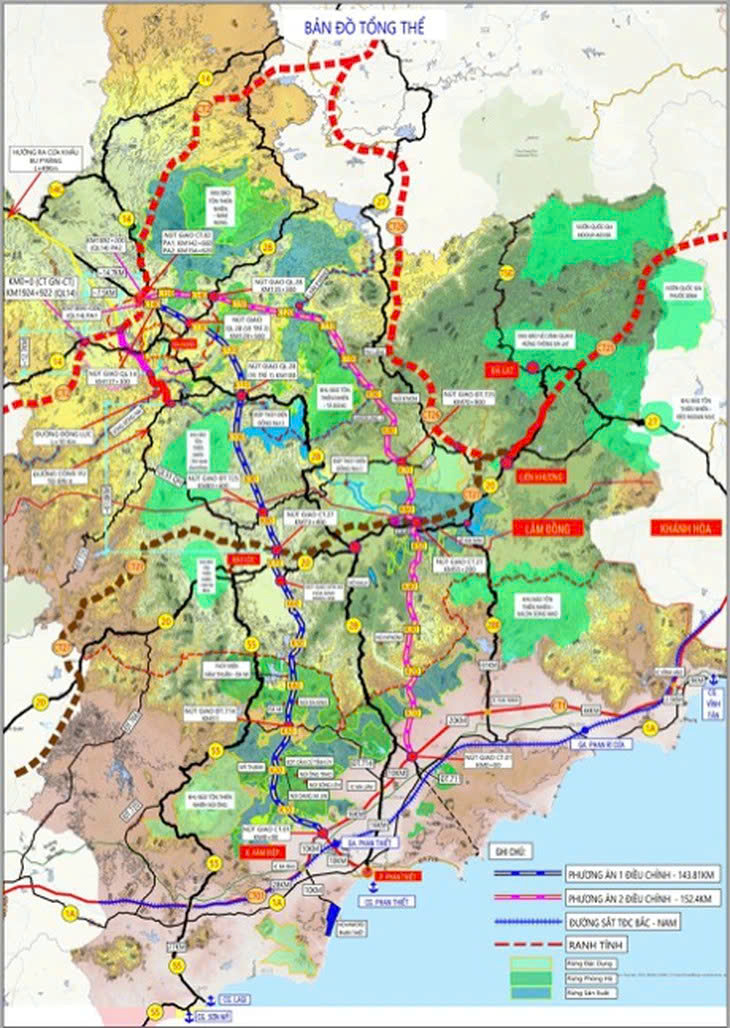 Trong đó phương án 1 có chiều dài khoảng 143,81km. Điểm đầu kết nối với cao tốc Bắc - Nam phía Đông đoạn Vĩnh Hảo - Phan Thiết, điểm cuối kết nối với cao tốc Gia Nghĩa - Buôn Ma Thuột theo quy hoạch.