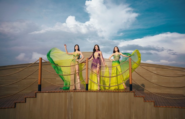 Đương kim hoa hậu Lê Hoàng Phương và 2 Á hậu Bùi Khánh Linh, Lê Thị Hồng Hạnh không quên đến Bikini Beach – Tọa độ check-in nổi tiếng, được du khách tấp nập đến tham quan, chụp hình sống ảo.